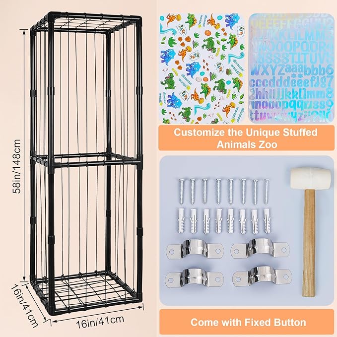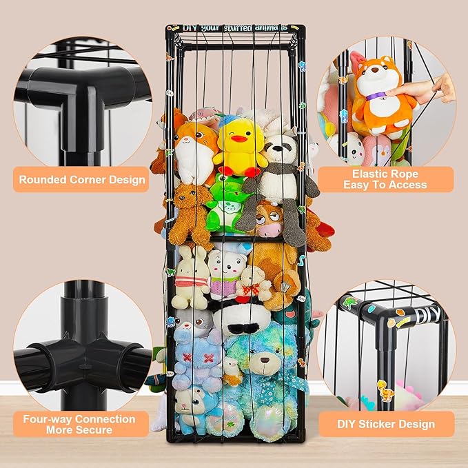 - Thicken PVC: The stuffed animals zoo made of premium PVC material and flexible elastic rope, it is not easy to loosen after assembly, firm and strong; Ideal for nursery, preschool, playroom, kids bedroom, large enough to hold lots of stuffed animals