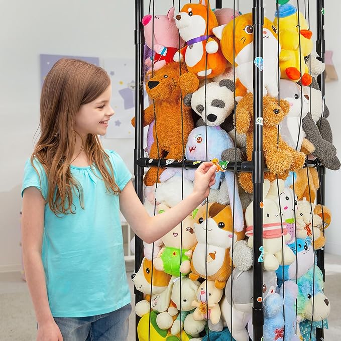 - Large Stuffed Animals Zoo: Our stuffed animals holder size is 16 x 16 x 58 inches, large capacity and space save design, can provide enough space to store kids toys; Holds a lot of stuffed animals, especially medium to large size stuffed animals; No more tripping over toys or stepping on stuffed animals