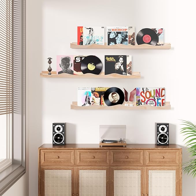 AZSKY Nursery Book Shelves for Kids, Picture Ledge Shelf for Wall Decor and Storage, Floating Photo Shelves with Lip for Picture Frames (Natural Wood, 23.6 Inches Set 3)