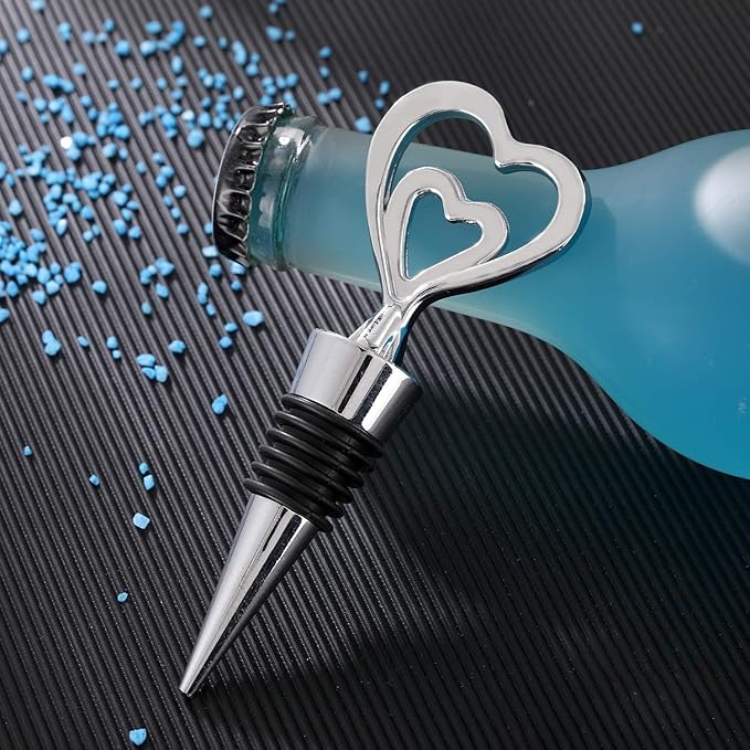 12PCS Valentine's Day Bridal Shower Favors for Guests,Nurses Gift Ideas Silver Heart Wine Bottle Stoppers Summer Holiday Birthday Gifts Wedding Souvenirs Party Supplies(12,Sliver Heart)