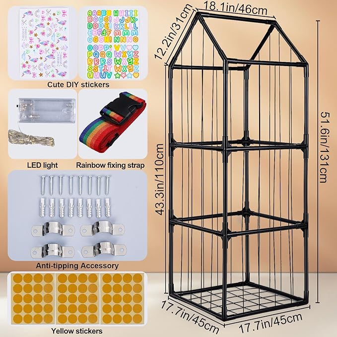 - Premium Materials: Made of PVC pipes and elastic rubber bands, designed with three layers, the toy storage organizer is sturdy; You can also use the rainbow elastic socket band to better secure each PVC pipe, making it more stable while decorating it