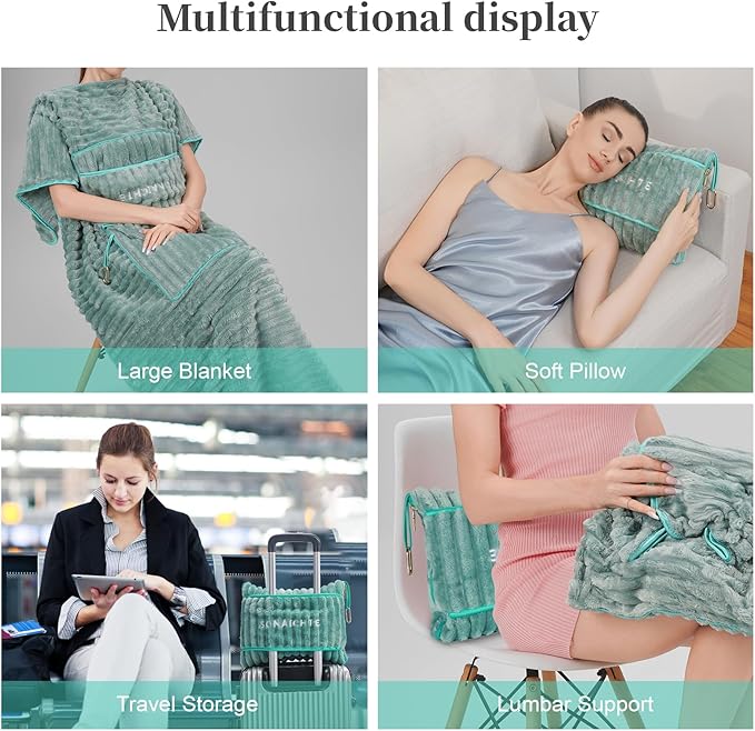 Travel Blanket Travel Blanket Airplane Compact with Bag 2 in 1 Travel Pillow and Blanket Set Travel Pillow and Blanket Car Road Trip Camping Essentials (Mint Green)