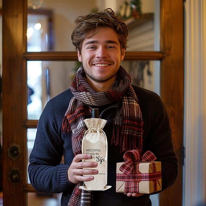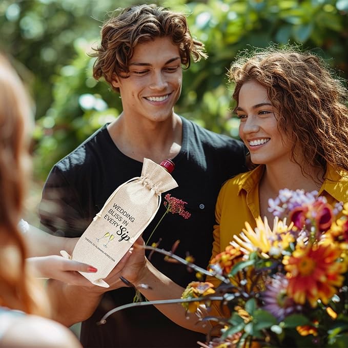 - 【Unique Design】Featuring the phrases "Wedding bliss in every sip" and "Cheers to planning perfection," this wine bag is the perfect gift accessory. Fill it with a fine bottle of wine or champagne to convey your heartfelt wishes and congratulations to the happy couple.