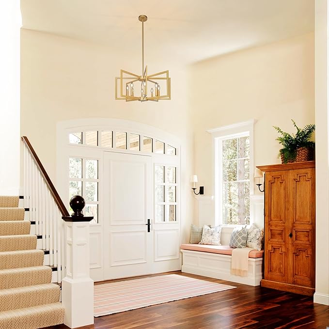 - Adjustable Height - Diameter: 26.8 in, Height: 20.5~61.8 in, Canopy Diameter: 5.1 in. Lantern pendant light are equipped with adjustable chains, and the height of the large gold chandelier can be easily adjusted according to your preferences. And, the gold hanging light fixture is allowed to be installed on sloped or flat ceilings.