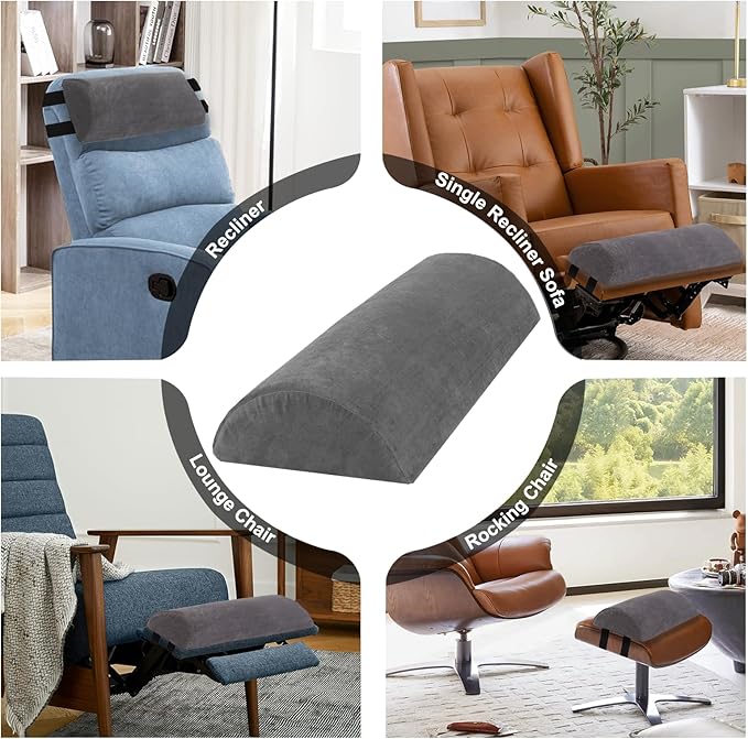- ERGONOMIC DESIGN:The unique half-moon design of this recliner cushion follows the principle of ergonomics, which can effectively elevate your legs and stably support your knees, legs and ankles when you are resting on the recliner, which is an extremely comfortable experience whether you are sleeping, watching TV or reading.