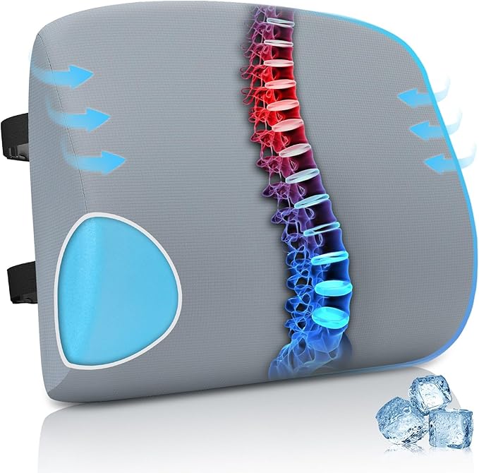 Lumbar Support Pillow for Office Chair Car Seat Cushion for Lower Back Sciatica Pain Relief Firm Memory Foam Pillows Wedge Chairs Cushions with Dual Straps (Cooling Grey)