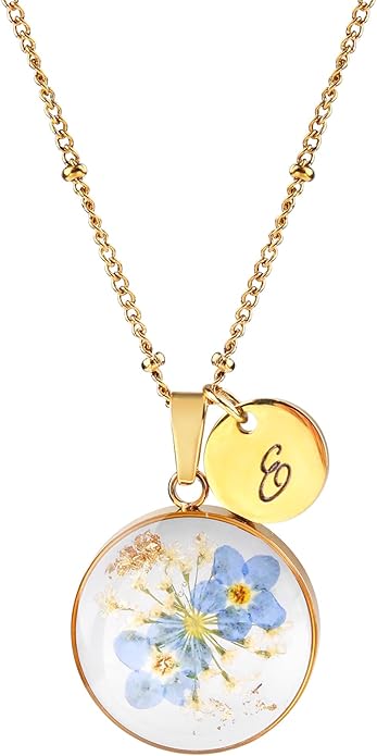 - 💖Unique Handmade Design: Each necklace is meticulously handcrafted, featuring real pressed Forget-Me-Not flowers encased in resin and a personalized initial charm.