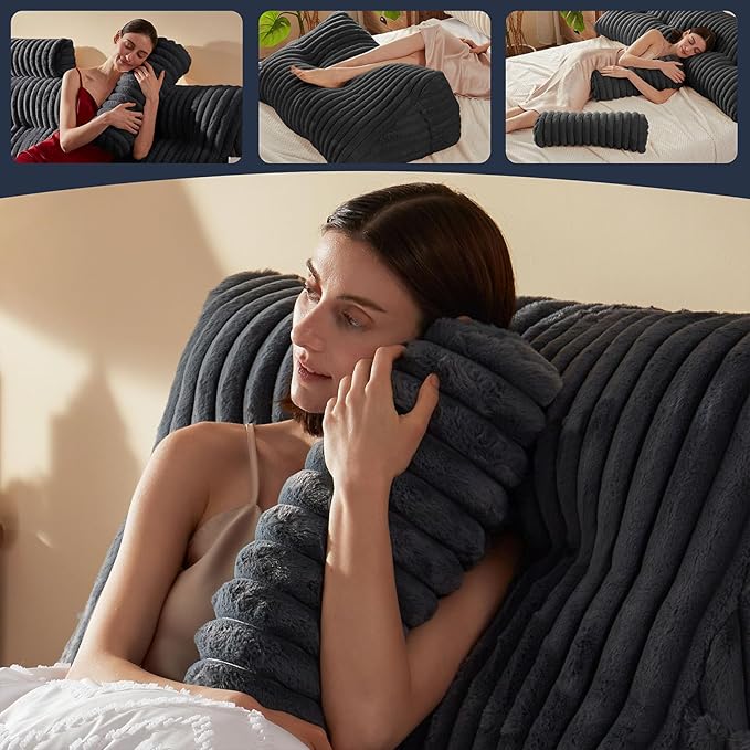 Faux Fur Headboard Pillow with 2 Pack Neck Roll Pillow Large Headboard Pillow Soft and Supportive with Removable Cover (Grey, Twin)