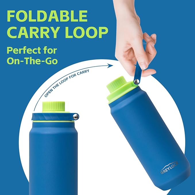Greylock 20 oz Water Bottle Insulated with Straw Lid, Reusable Metal Water Bottle Stainless Steel with Carry Handle for Travel,Sports, BPA-Free Leak Proof When Closed, Cold for 24 Hours (Blue)