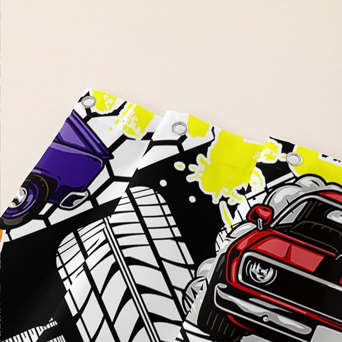 AILONEN Racing Car Shower Curtain for Bathroom Decor,Cool Racer Bath Curtain for Kids Boys Teens,Graffiti Printed Curtain Waterproof with 12 Plastic Hooks, 36" W x 72" H