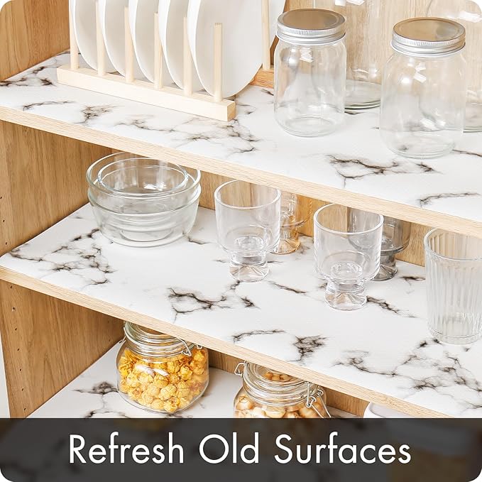 - 【Versatile Use】: Shelf paper perfect for kitchen cabinets, shoe shelves, desks, pantries, wire shelves, storage cabinets, drawers, closets, and refrigerators;They also make a thoughtful gift for your mom or friends, showing you care about their home organization