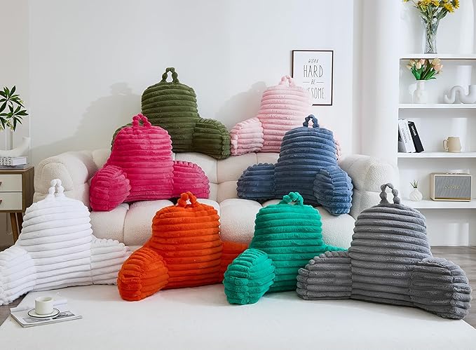 - PLUSH READING PILLOW : Experience ultimate relaxation with this soft reading pillow, cover is made of stripe rabbit fur and filled with premium polyester that perfectly adjusts to your body for optimal support.