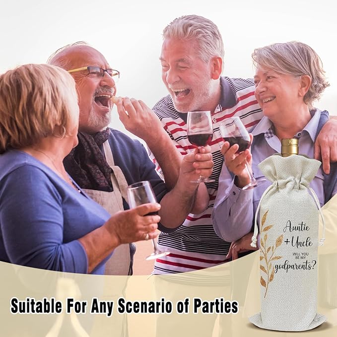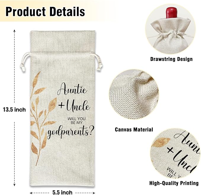 Wine Canvas Bag, Godparent Gift Wine Gift Bag, Godparents Proposal Gifts for Brother Sister Auntie Uncle Wine Bags for Wine Bottles, Wine Champagne Gifts With Drawstring Baptism Party Decoration -WB07
