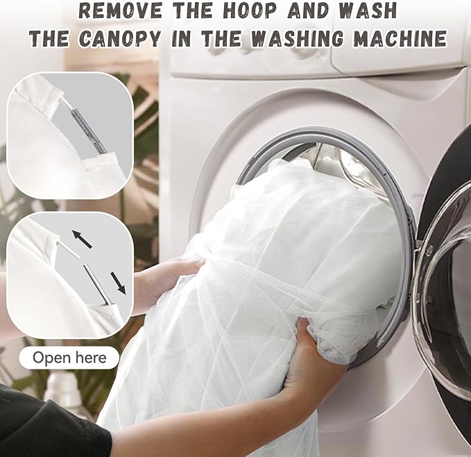 - It is easy to disassemble and easy to clean, find the opening. After you've cleaned it. Just pass the iron ring through the mosquito net to make it round. The total height of the cloth is 108" , 27 inches diameter at the top