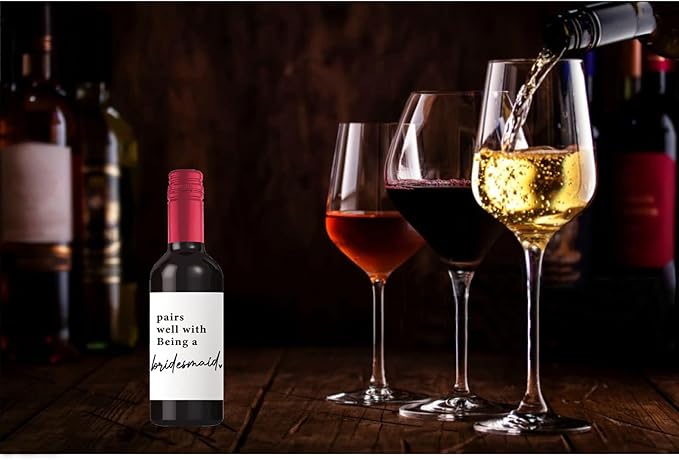 24Pcs Bridesmaid Mini Wine Labels, Bridesmaid Maid of Honor Proposal Gifts Bridal Shower Gifts, Will You Be My Bridesmaid Wine Bottle Stickers, Pairs Well with being