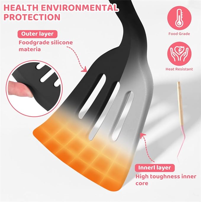 - 【HIGH-QUALITY COOKING UTENSIL SET】These ergonomic utensils are made of premium food-grade silicone and durable heat-resistant acacia wood. With a heat resistance of up to 464°F, these utensils offer both flexibility and sturdiness for all your cooking needs. Enjoy reliable quality and great value with this essential kitchen utensil set.