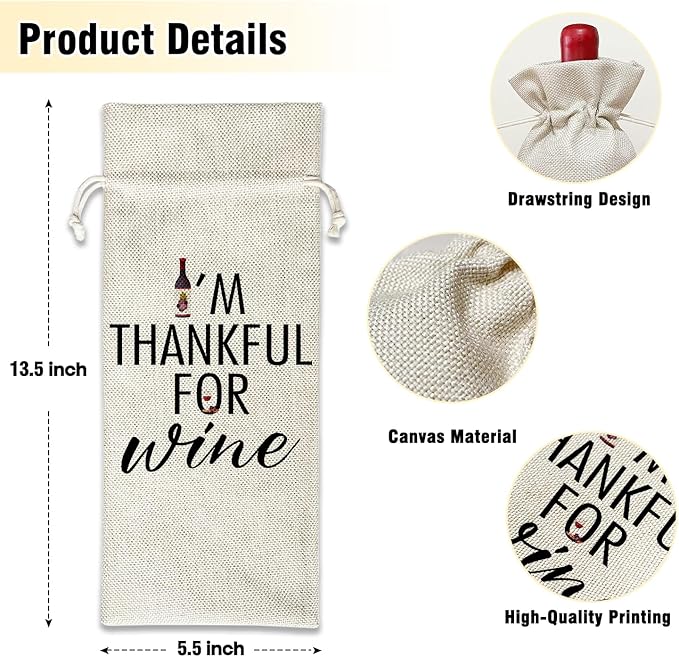 Wine Canvas Bag, Thanksgiving Wine Gift Bag, Thanksgiving Gifts for Friend Bestie Wife Autumn Harvest Party Wine Bags for Wine Bottles, Wine Gifts With Drawstring Holiday Fall Party Decoration -WB38