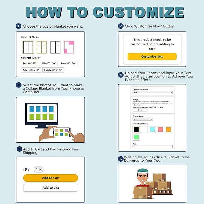 - ❤【Customizable Blanket】Design your own special fluffy plush ultra-soft micro flannel throw blankets with name or text you want.Click "Customize Now". Upload The Photos Of Your Family, Friends, Or Pets.Or the text you want to customize.We print and sew each custom separately to ensure that the pattern received by the customer is complete and the blanket is firm. The absence of defects of incomplete local printing.