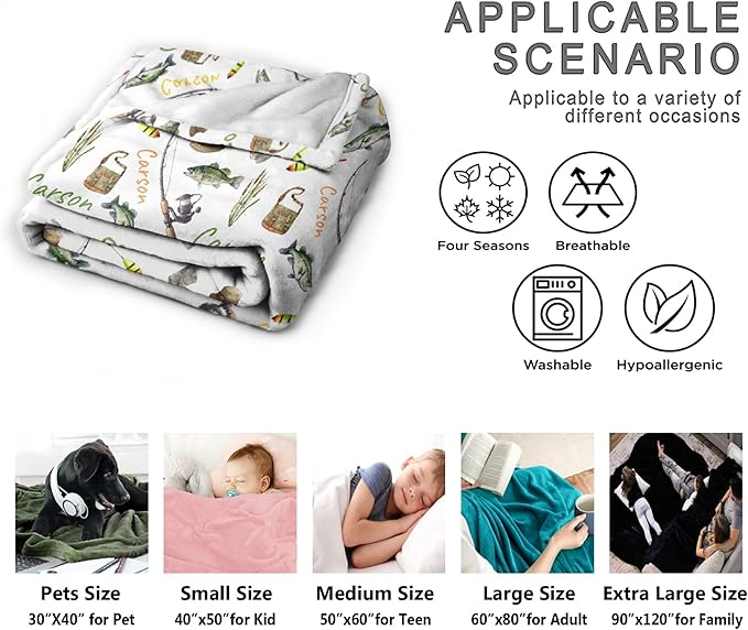 Custom Fishing Blankets and Throws,Fishing Gifts, Gifts for Fisherman,Custom Fish Blankets Fishing Gift for Man, Fish Hunter Gifts Throw Blanket, Fathers Day Fishing Gifts for Men,Kids Size-40"x50"
