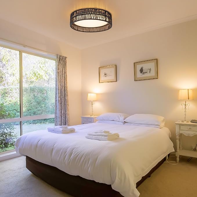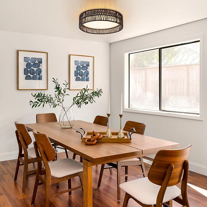 - Unique Design & Wide Application:The rattan flush mount ceiling light is a combination of modern and farmhouse style.The ceiling light fixture is perfect for the bedroom, hallway, entryway, small room, nursery, kitchen, living room, dining room, lakehouse, balcony, farmhouse, etc.