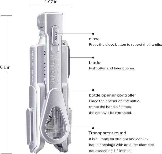 - Multi-Function Opener: 3 in 1 of corkscrew wine opener, wine corkscrew with foil cutter and beer opener.