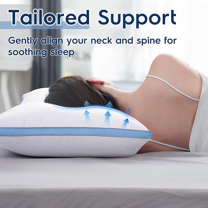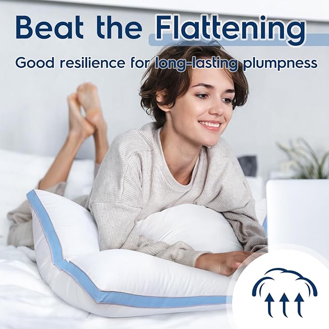 - Just-right Support: Infused with premium down alternative clusters, viewstar standard pillow ensures optimal support for your head and neck, cradling snugly without too much sinkage. It helps encourage neutral spine alignment and will respond nicely to your head position during the night. Meanwhile, it provides sufficient cushioning to promote comfort for truly restorative slumber. Ideal for sleepers who prefer a firmer pillow with a medium-to-high loft