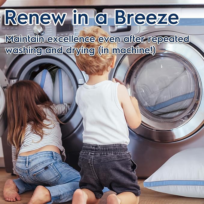 - Hassle-free Use: Thoughtfully made of machine-washable materials that can go right into your home washing machine and dryer. Easy to maintain and will bloom like new even after repeated washing. Sturdy stitching adds to its longevity and prevents fill from escaping. Measuring 20" x 30" in queen pillows set of 2; come vacuum-sealed and will quickly expand to their full size within 24 hours