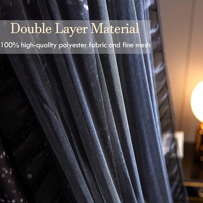 - 【Galaxy Pattern Printed Bed Canopy】 This exquisite bed canopy offers kids a fantasy castle to have fun inside. The galaxy pattern print is full of artistic and romantic colors, stimulate your child's imagination and creativity well. The canopy for kids room offers children a castle, a club and a secret garden, a personal space with their friends. Charming print canopy bed curtains make your bedroom full of energy. Unexceptionable gifts for kids, friends, family.