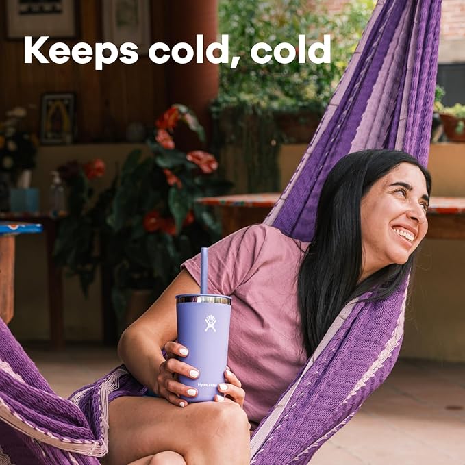 - STRAW TUMBLER: The 28 oz Hydro Flask All Around Tumbler with Straw Lid is ready for smoothies to lemonade, and everything in between, keeping drinks cold for hours. The leak-resistant Straw Lid keeps your favorite drink at the ready and easy to sip.