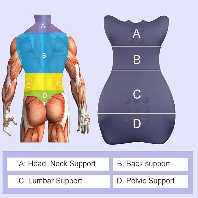 - SUPPORT YOUR ENTIRE BACK - Sitting for a long time will not only lead to back pain but also lead to your shoulder and neck pain, unlike other short lumbar pillows our lumbar support pillow is longer, the upper part of the long lumbar pillow ergonomic wrap around design can support your shoulders and neck, so that you can tilt your head back to rest while you sit for a long time and the pillow's upper portion's raised design allows your head not to slip off while you're snoozing!