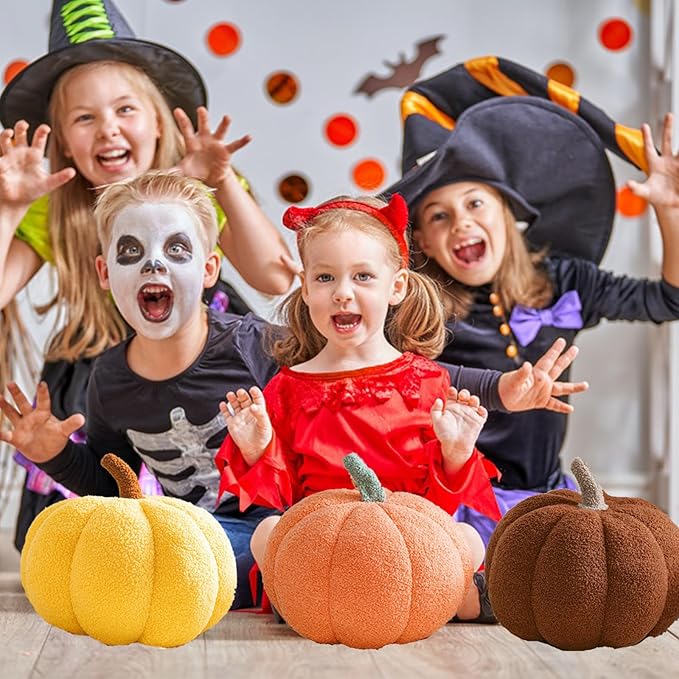- Halloween Pumpkin pillows - Pumpkin pillow Very creative stuffed pumpkin throw pillows are an important part of Halloween and Thanksgiving themed room decorations. It's not only can you decorate a Halloween-themed room, but it is also a perfect fall decoration pillow. Pumpkin plush throw pillows suitable for placing in the living room, bedroom, car, sofa, bed, or anywhere you want to add fun, it's a great gift for friends, lovers, girlfriends