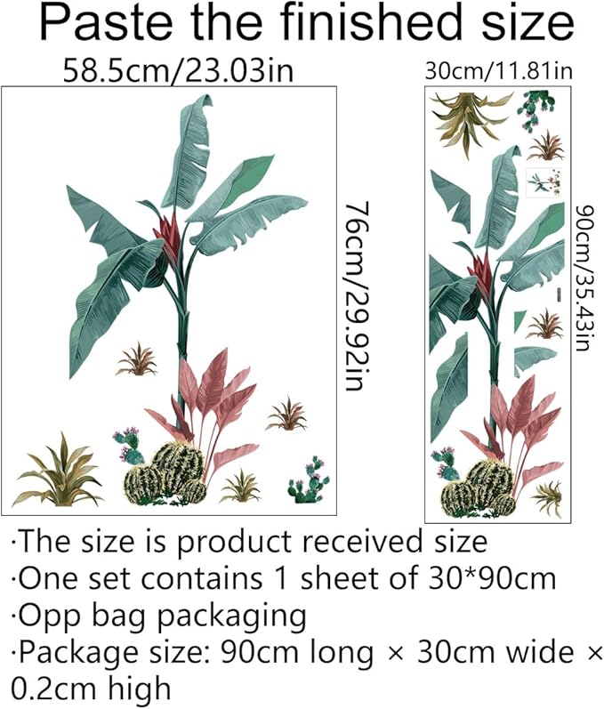 - Nature-Inspired Designs: The wall decals feature beautiful green leaf and pink flower designs that bring a touch of nature to your home decor. High-Quality Material: Made with durable and easy-to-apply material for long-lasting use. Easy Application: Simply peel and stick the decals to any smooth surface for an instant update to your walls. Versatile Decor: The decals can be arranged in creative ways to suit your personal style and enhance any room. Convenient Packaging: The set comes in a convenient package with dimensions of 90cm x 30cm x 0.2cm, making it easy to store or gift.