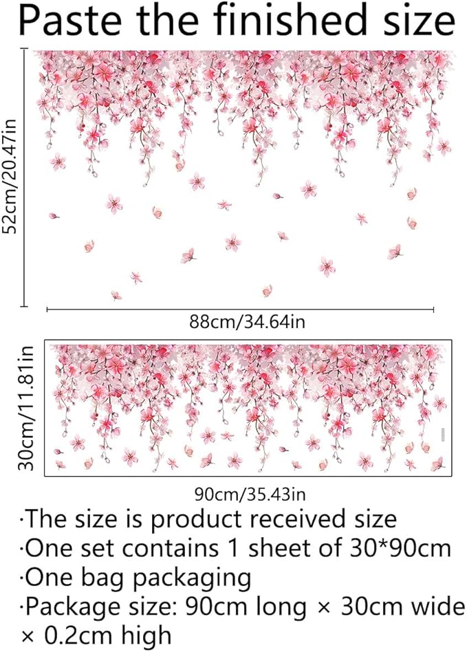- Elegant Design: The wall stickers feature delicate pink flowers on a white background, adding a touch of elegance and femininity to your home decor. High-Quality Material: Made with durable and easy-to-apply material for long-lasting use. Perfect Size: The product size is 30cm in width and 88cm in height, suitable for various wall sizes. Easy Application: Simply peel and stick the stickers to any smooth surface for an instant update to your walls. Versatile Decor: Perfect for bedrooms, living rooms, or any area that needs a stylish and elegant touch.