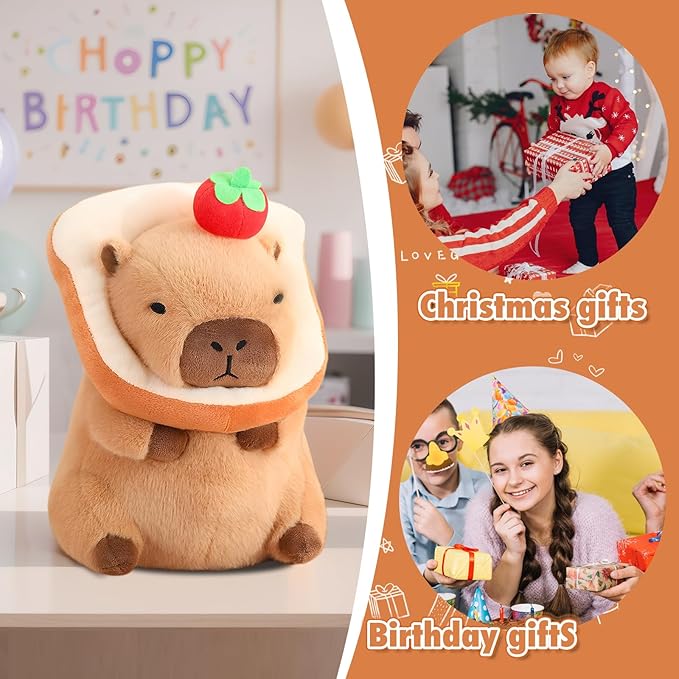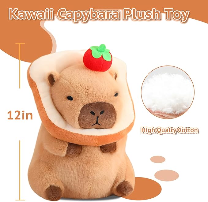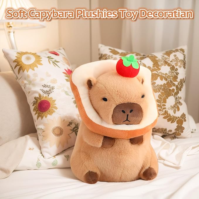 - Capybara Stuffed Animal Plush Decor: Cute capybara plush pillow with wearable toast headwear can used as a pillow, waist pillow, nap pillow and back pillow, as a decoration for bedrooms, living rooms, sofas, cars, offices etc