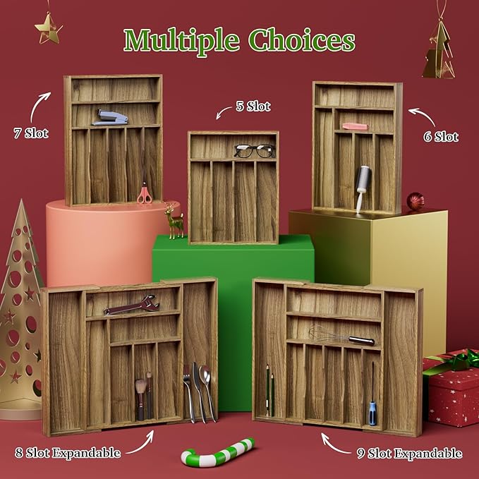 - ๐๐๐๐ฉ ๐๐จ๐ฎ๐ซ ๐๐ซ๐๐ฐ๐๐ซ๐ฌ ๐๐ซ๐ ๐๐ง๐ข๐ณ๐๐-If you're tired of searching for the right utensils in cluttered drawers, this silverware organizer will help. The expansion feature makes it easily to use in almost any kitchen drawer. It has enough compartments for your knives, dinner forks, salad forks, table spoons, soup spoons, kitchen tools and almost all silverware. Looks built in and fits perfect. Really adds to your kitchen.