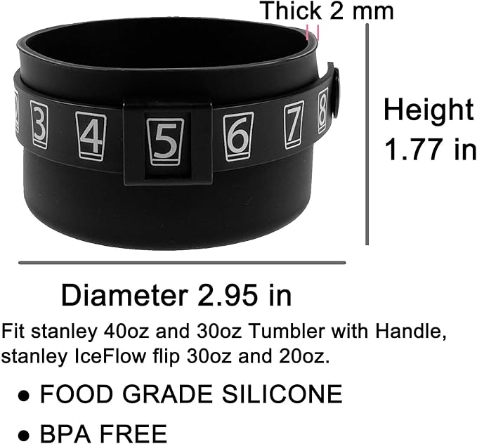 - Silicone boot size: Diameter: 2.95 in. Height 1.77 in. It fits Stanley, Hydroflask, Yeti, Owala, Simple Modern and so many other bottles that are 20-40oz.