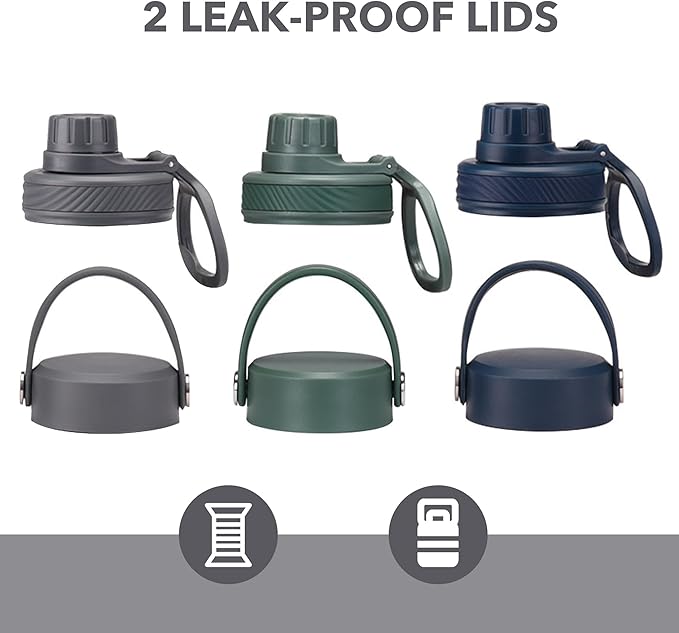 - 【One Bottle with 2 LIDS】: Aiivow stainless water bottle comes with 1 easy-twist spout lid and 1 portable handle lid. Provide you with maximum convenience on the occasion you need. *NOTE: The stainless steel lid without straw*.