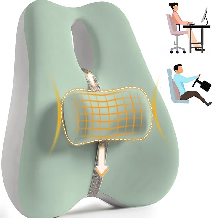 Lumbar Support Pillow for Office Chair Back Support Pillow for Car, Computer, Gaming Chair, Recliner Memory Foam Back Cushion for Improve Posture (Green)