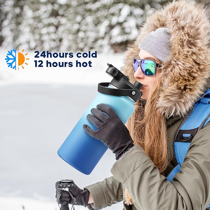 Half Gallon Insulated Water Bottle with 2-in-1 Lid (Chug Lid/Straw Lid), 40/64oz Double Walled Vacuum Stainless Steel Water Bottles, Water Jug with Straw
