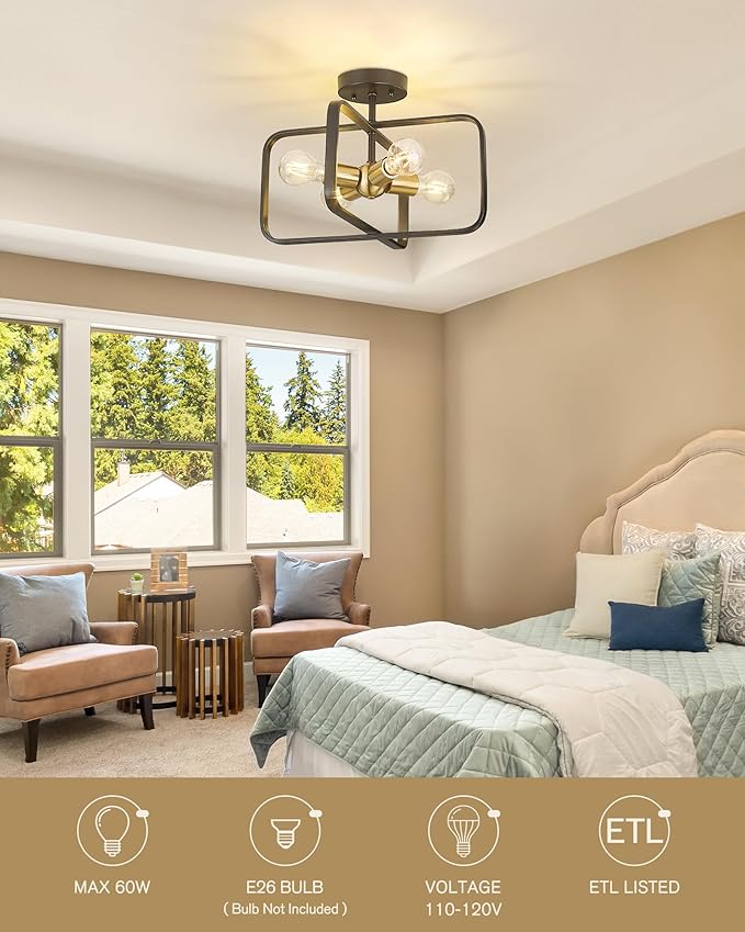 - [Bulb Requirements] This ceiling light fixtures requires 4 x E26 base bulbs (60W max). It’s fully dimmable when used with compatible dimmable bulbs and switches (bulbs and dimmer switch not included).