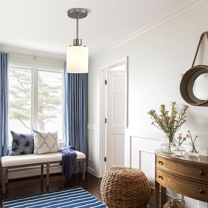 Brushed Nickel Pendant Lights Kitchen Island - Milk Glass Pendant Light Fixture Multiple Stems Rods 3 Units 12 Inch 3 Units 4 Inch (2 Pack Brushed Nickel Downrod)
