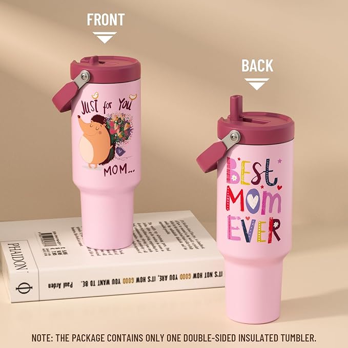 Gifts for Mom, Mothers Day Gifts for Mom from Son or Daughter - Birthday Gifts, Christmas Gifts, Mother's Day Gifts - 40 oz Tumbler with Lid and Straw (Hedgehog)