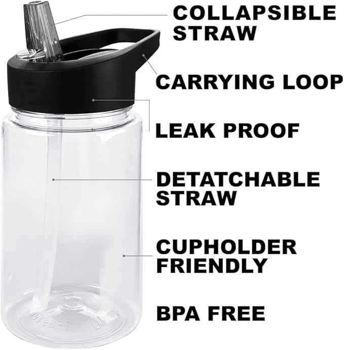 - PERFECT SIZE FOR KIDS TO CARRY WITH THEM ON THE GO: Designed with your little one in mind, this 12oz tritan plastic water bottle is the perfect companion for any adventure, whether it's a day at school, a family outing, or a sports practice. Measuring at 6.4"L x 3.4"W, it's compact and lightweight, fits in most car cup holders, and is easy for little hands to carry and hold.